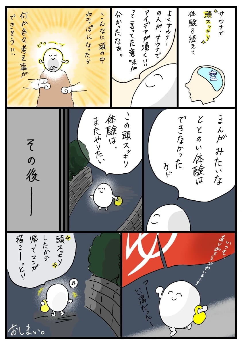 2023年06月14日 【サ活マンガ】サウナで整いたい!⑮終 サウナのお話も今回でおしまいです。お読みいただきありがとうございました!第1話はコチラから↓ < 前の記事次の記事 > コメント コメントフォーム 名前 コメント 記事の評価 リセット リセット 顔 星 情報を記憶 コメントを投稿する