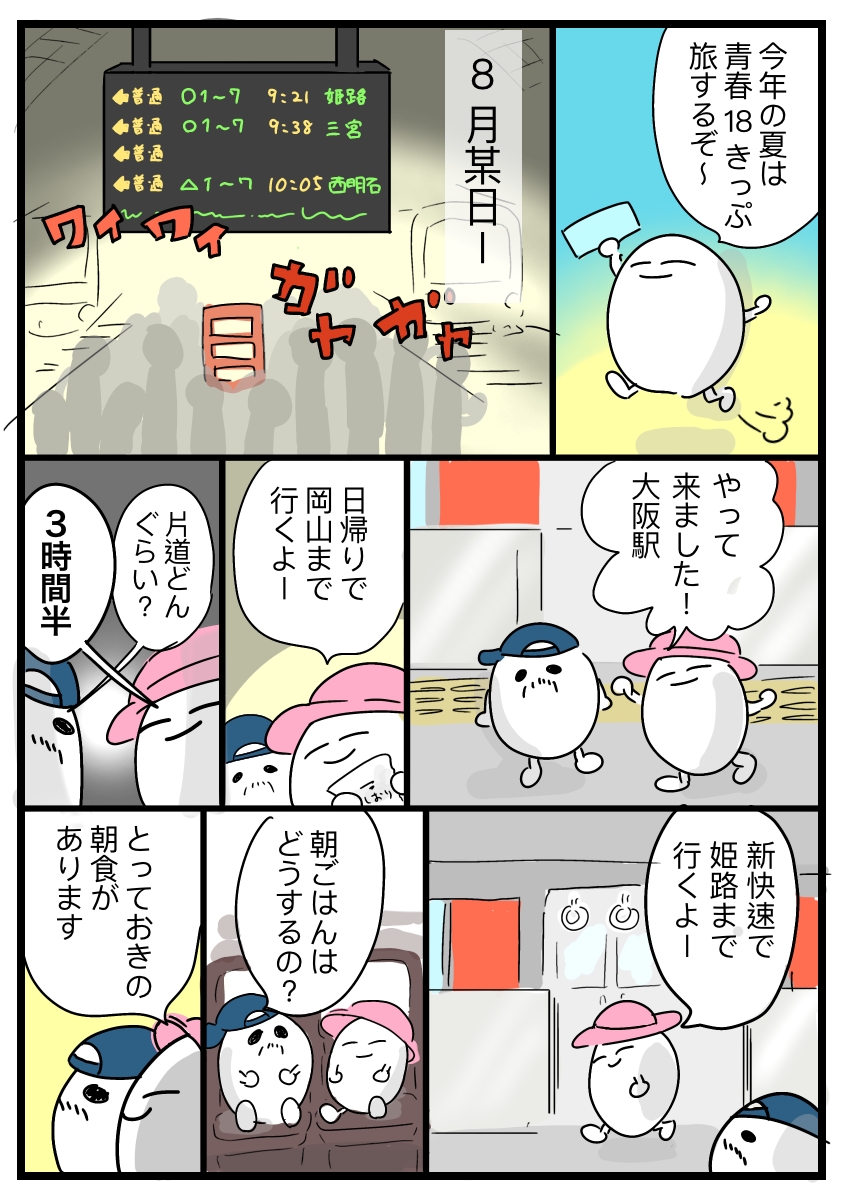 この漫画は2024年8月に青春18きっぷを使用して旅をした漫画になります。